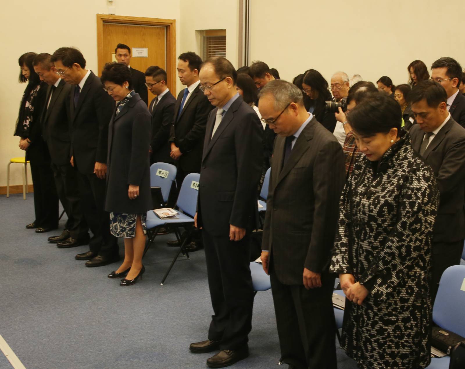 香港這類弔唁活動形式較為簡樸。進門後在專人引導下我緩步走到靈堂前,聽從主持人的口令三鞠躬,再到左側與依次肅立的查太太和親屬一一握手問候,然後至休息區小坐。