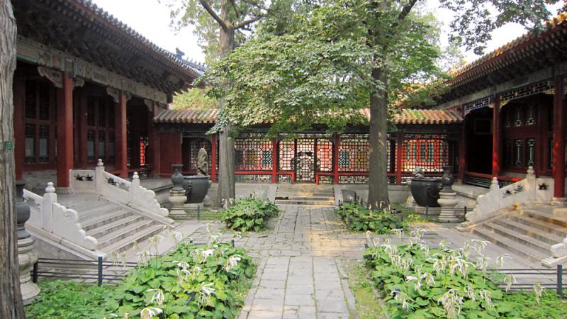 清代統治在乾隆皇帝弘曆(一七一一至一七九九,在位一七三五至一七九六)一朝達至頂峰。他是中國歷史上長壽和在位最久的天子,十全武功、六下江南、擅詩詞書畫,子女共二十七人。乾隆三十七年(一七七二)下旨建造退位後的太上皇宮,又稱乾隆花園,作為頤養天年之用。這座「秘密花園」體現了他效法大禹「倦勤」的思維,祈求國泰民安、闔家福樂、益壽延年。花園佔地十餘畝,內有多所建築包括古華軒、遂初堂、三友軒、萃賞樓、符望閣、玉粹軒、倦勤齋等;遍植樹木、疊石為山、連綿不斷,反映他追求「樂善」的仁者胸懷,即所謂「仁者樂山」、「仁者靜」、「仁者壽」之道。花園內有四幅通景畫,位於倦勤齋、玉粹軒、養和精舍明間及養和精舍南間,分別描畫藤蘿架及夏天景致、皇妃皇子玩樂嬉戲的情景,寓意天下太平、子孫滿堂、花開結子的吉祥寓意。花園內也廣設佛堂,供奉佛像、羅漢。殿室內遍置珍罕傢具、器物、書畫等,琳琅大觀。惜乾隆逝世後,清代晚期國勢日衰,內憂外患不輟,而這座盛世皇朝的花園也逐漸荒廢,要在重修後才對外開放。