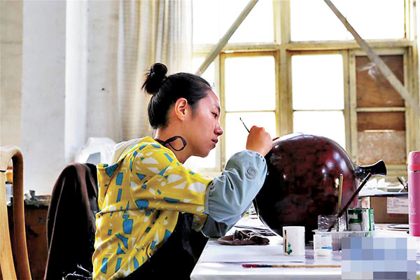 為了吸引更多年輕人傳承雕漆技藝,張曉軍與多地藝術院校合作,為學生提供實習、觀摩等機會,通過校企合作的方式招納專業人才。目前,該公司生產一線的「90後」員工近20人。23歲的路愛平今年從甘肅工業職業技術學院的工藝美術品設計專業畢業後,就成為公司的一名員工。