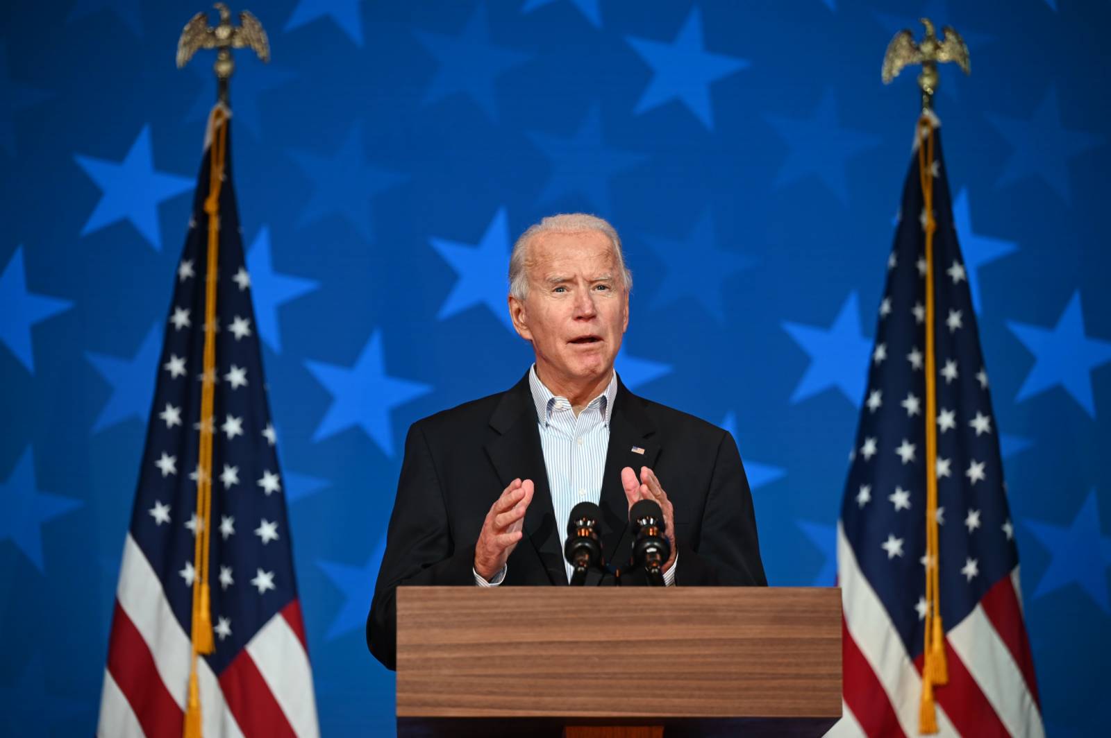 大文新聞網綜合報道,當地時間7日晚8時(北京時間8日9時),拜登與哈里斯在特拉華州威爾明頓向全國發表講話。拜登在講話中表示,他將在9日任命一組科學家和專家,幫助建立應對新冠的計劃,並稱該計劃將從他就任總統的第一天開始施行。