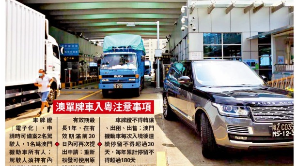 《意見稿》提出,澳門機動車限在廣東省行政區域內道路行駛,車輛須懸掛澳門機動車號牌,隨車攜帶機動車交通事故責任強制保險憑證;這也意味着將不受廣州、深圳等城市單雙號或外地牌限行政策的影響。