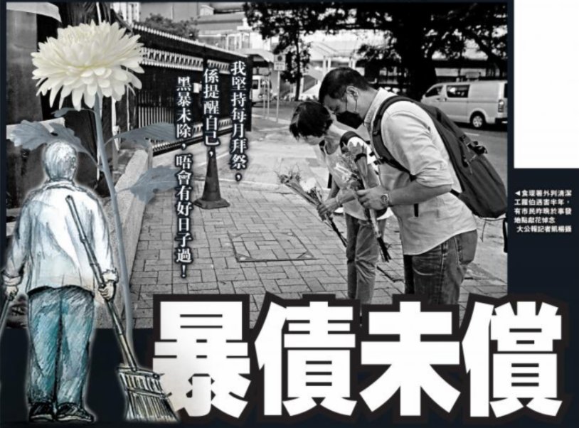 大公文匯全媒體報道,70歲食環署外判清潔工羅長清(羅伯)於去年11月13日途經北區大會堂示威現場附近時,遭暴徒投擲磚頭擊中頭部,送院後翌日不治。羅伯案亦是自去年6月修例風波以來,黑暴分子所欠下的首宗命債。今日(13日)是「羅伯」不幸罹難一周年。不少市民對暴徒戕害羅伯感到憤怒,希望警方盡快把所有暴徒捉拿歸案,讓正義得到伸張。