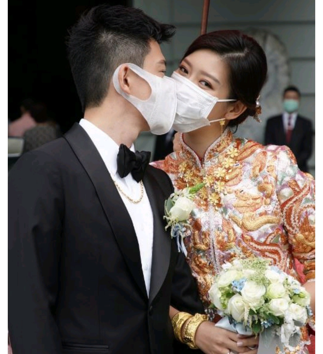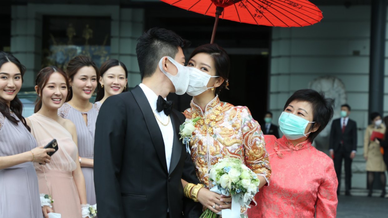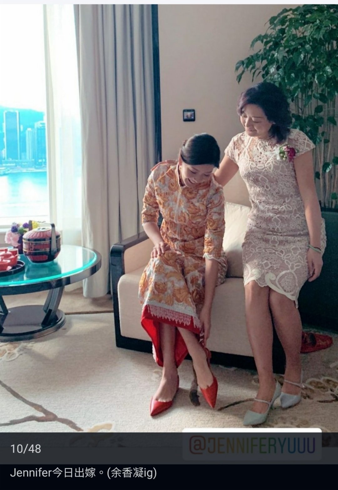 余香凝今早已在IG轉發了化妝師為其變妝後穿上裙褂的短片,新娘子甜笑不停轉身,難掩興奮心情。短片中看到她在酒店房中,準備好等新郎帶同兄弟團到來接新娘。化妝師還貼出一對新人送給親友的小禮物。基於疫情問題,一對新人婚禮均在酒店舉行,包括斟茶及簽紙儀式,並以西式設午宴,大概有50名親友出席。
