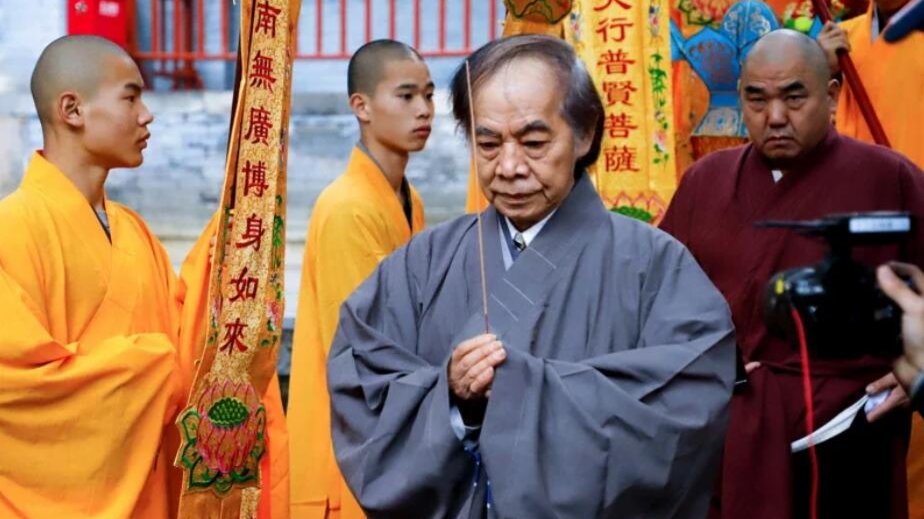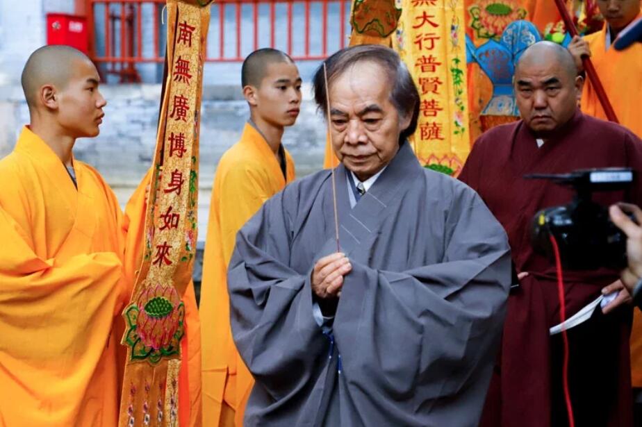 17日上午9時,蔡志忠的剃度儀式在少林寺藏經閣舉行,少林寺方丈釋永信大和尚授受皈依。隨着三綹青絲落下,蔡志忠身披僧袍,轉身而為佛門沙彌釋延一。
