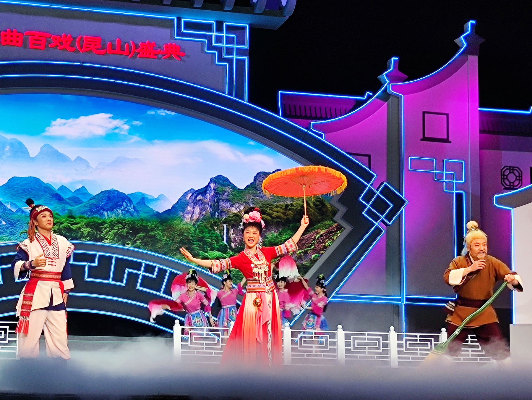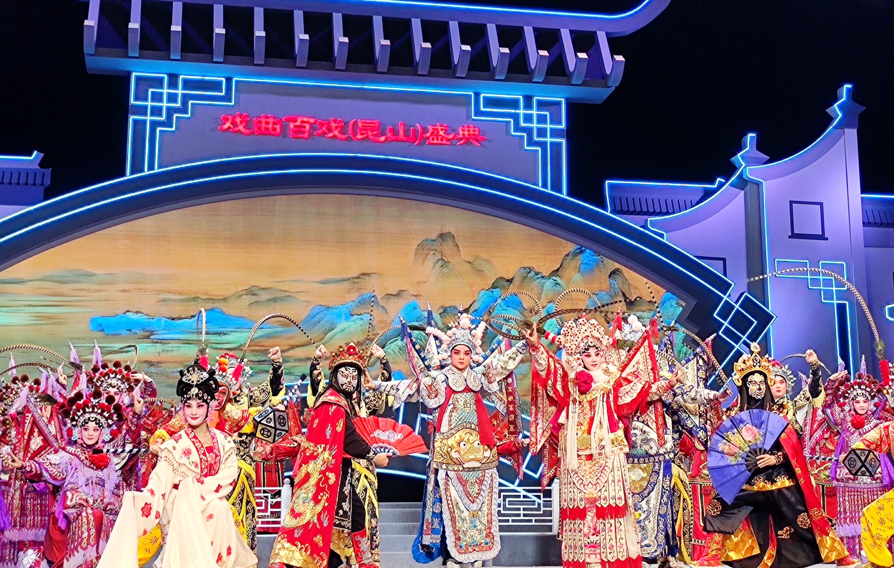 今年的百戲盛典升格為文化和旅遊部、江蘇省人民政府主辦,文化和旅遊部藝術司、江蘇省文化和旅遊廳、昆山市人民政府承辦。歷時三年的百戲盛典先後組織全國348個劇種以及木偶劇、皮影戲兩種戲劇形態、408個劇目在昆山開展201場演出,共12000名演職人員參加演出,2087人次志願者參與服務,現場觀眾人數達11萬人次,網絡直播觀看量超1.5億人次,新浪微博纍計閱讀量超7.2億次,抖音播放量超4.2億次。