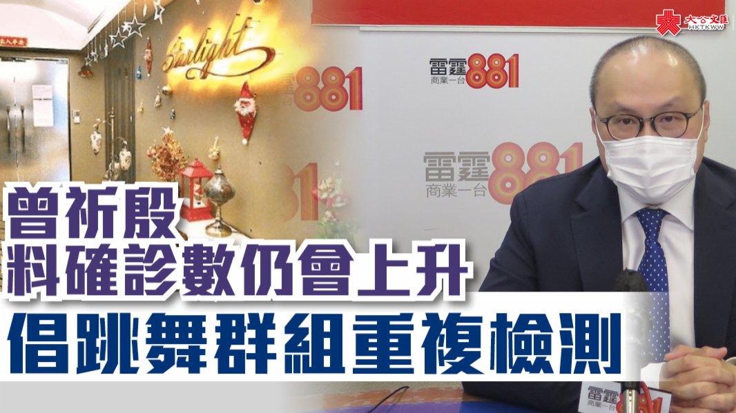 大公文匯全媒體報道,香港新冠肺炎疫情惡化,醫學會傳染病顧問委員會聯席主席曾祈殷今日(25日)出席一個電台節目時表示,第四波疫情較第三波來得急速及兇猛,預料未來兩星期,確診個案數字仍會上升,呼籲市民勿掉以輕心。他又指,跳舞群組人士即使現時驗出對病毒呈陰性反應,都仍有機會稍後發病,建議衞生署要求相關人士重複檢測。