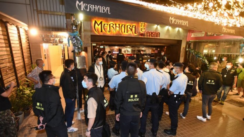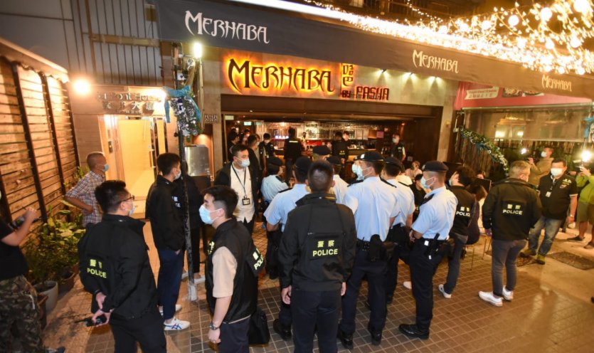 大批警員昨日(25日)深夜11時許,到尖沙咀天文台道及諾士佛台一帶的酒吧區巡查,提醒酒客凌晨零時起酒吧須關閉,勸喻他們及時離開,並向相關的負責人講解最新的法定防疫措施。行動中無發現酒吧有違例營業及搜出任何違禁物品。