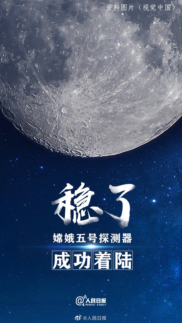 據央視新聞消息,記者從國家航天局獲悉,剛剛,嫦娥五號探測器成功在月球正面預選着陸區着陸,並傳回着陸影像圖。接下來,持續約2天的嫦娥五號月面採樣將正式開始,預計將採集2千克左右的月球樣品。