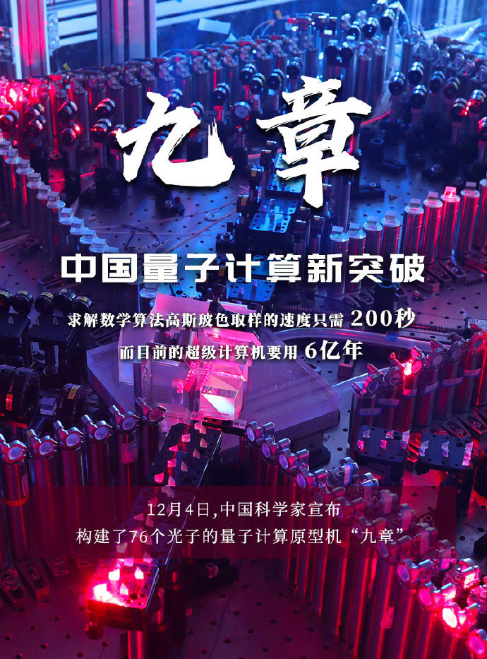 據新華社報道,12月4日,中國科學技術大學宣布該校潘建偉等人成功構建76個光子的量子計算原型機「九章」,求解數學算法高斯玻色取樣只需200秒,而目前世界最快的超級計算機要用6億年。這一突破使我國成為全球第二個實現「量子優越性」的國家。
