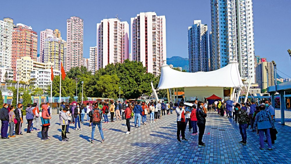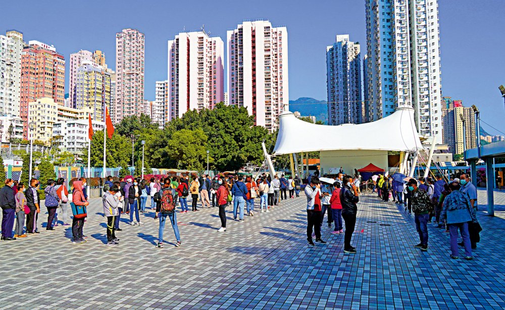 社區檢測中心與採樣亭由專人採樣,檢測人數較多。鰂魚涌中心網上預約到本月14日才有名額,記者昨午目測人龍約百人,估計要排兩小時。油塘中心同樣到14日才有預約額。採樣亭不設預約,多在戶外,市民日曬雨淋。黃大仙採樣亭大排長龍,有市民稱等逾半小時也未採樣;荃灣採樣亭有市民下午三時半到達,輪候兩個半小時才完成採樣,晚上八時仍有長長人龍。