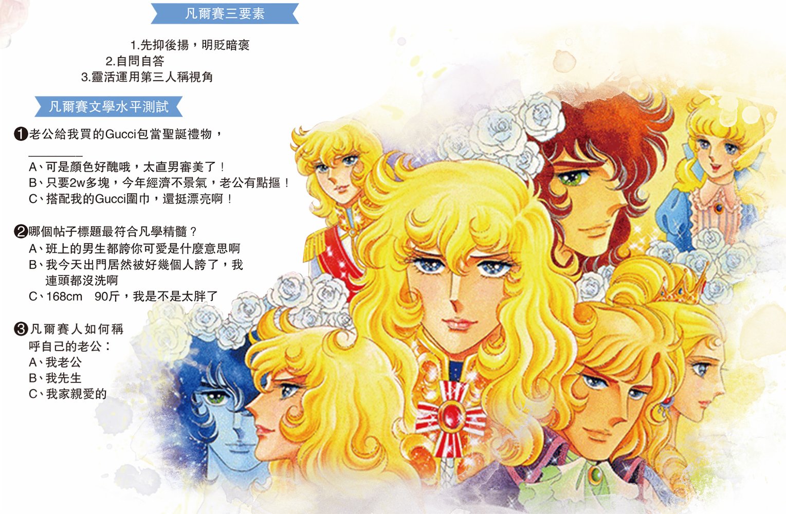 隨即,「凡爾賽文學」又衍生出了一派詞彙,比如使用「凡爾賽文學」的人被稱為「凡爾賽玫瑰」;精通「凡爾賽文學」的人被稱為「凡學家」。