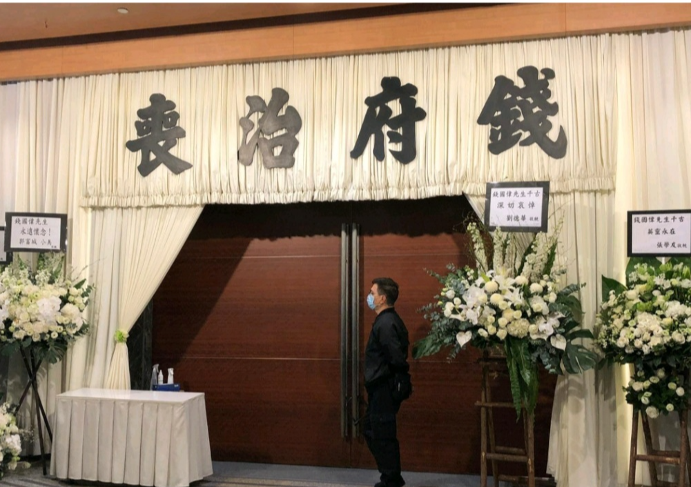 此外,靈堂外當眼處,放了三大天王劉德華、張學友及郭富城致送花圈。