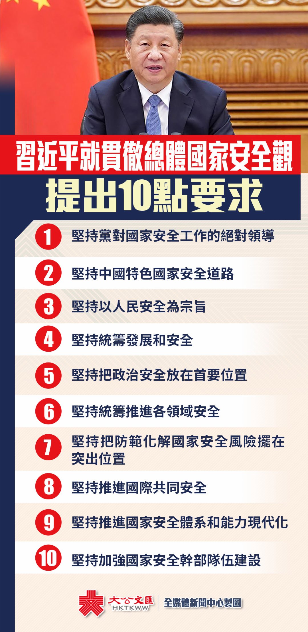 大公文匯全媒體報道,12月11日下午,中共中央總書記習近平在主持中共中央政治局第二十六次集體學習時強調,國家安全工作是黨治國理政一項十分重要的工作,也是保障國泰民安一項十分重要的工作。並指出,做好新時代國家安全工作,要堅持總體國家安全觀,抓住和用好我國發展的重要戰略機遇期,把國家安全貫穿到黨和國家工作各方面全過程,同經濟社會發展一起謀劃、一起部署,堅持系統思維,構建大安全格局,促進國際安全和世界和平,為建設社會主義現代化國家提供堅強保障。