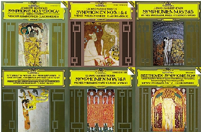 二百五十年前的十二月十七日,「樂聖」貝多芬在德國波恩受洗。論及今人最家喻戶曉的貝多芬名曲,其傳世的九大交響曲可謂「獨孤求敗」。幾乎所有指揮大師在其職業生涯中都會灌錄一次或幾次貝氏全套交響曲,而每位聽眾所鍾愛的版本也各有不同。在貝多芬二百五十歲冥壽之際,我選擇和朋友們分享一套由二十世紀意大利指揮大師克勞迪奧.阿巴多於一九八七至一九八九年間指揮維也納愛樂樂團所灌錄的《貝多芬交響曲全集》。或許此版本並非是很多人的首選,但這套貝氏交響曲全集的封面卻頗為講究:均取自奧地利國寶級繪畫巨匠、分離派泰斗古斯塔夫.克里姆特為維也納分離派中心繪製的裝飾壁畫《貝多芬橫飾帶》。