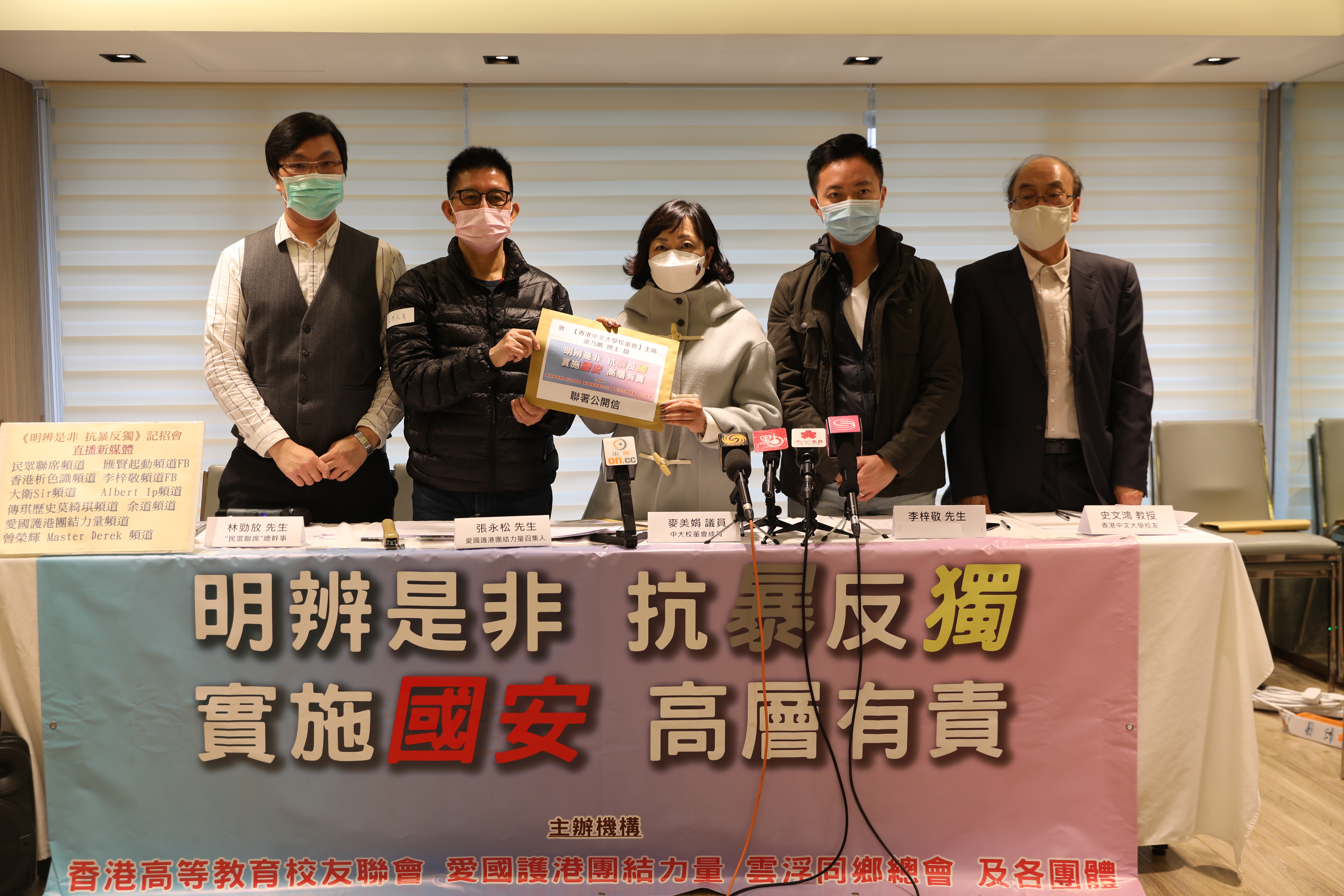 愛國護港團結力量召集人張永松則批評,中大管理層「不辯是非,卸責失職」,要求學校管理層為校園內的違法事件負責。他建議設立「學校管理層問責制度」,監察校方是否有遵循香港國安法「除黑抗暴」,將中大「撥亂反正」。新民黨李梓敬則表示,校方對於任何人於校園內進行違法行為,都需要邀請警方入內執法,「看不到任何理由允許外校人士進入校園犯法。」