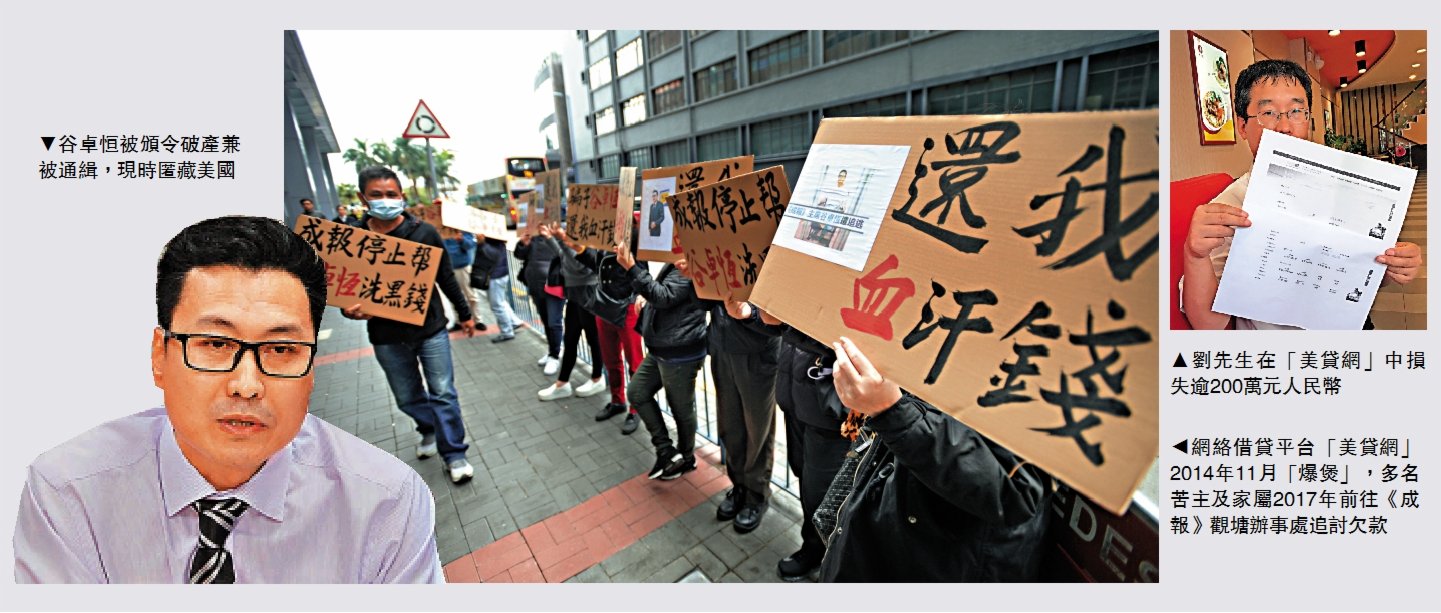 有81年歷史的《成報》多次易主,現時的老闆是商人谷卓恒,惟谷先後遭多名債主入稟追債。最大債主金利豐財務有限公司在2017年入稟高院,指谷借款一億元,一直未有還款,連同利息結欠1億900萬元,高院最終在今年八月頒令谷卓恒破產。