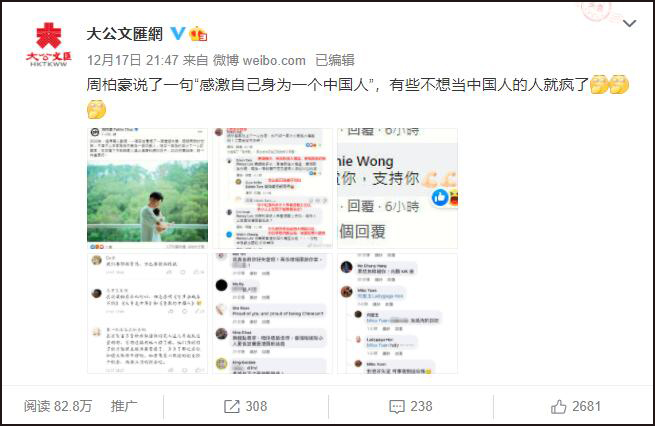 周柏豪這一句「不得不心存感激自己身為一個中國人」,