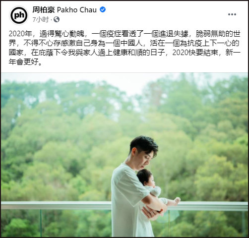 昨天,香港藝人周柏豪在Facebook上發了個帖子,內容是:↓