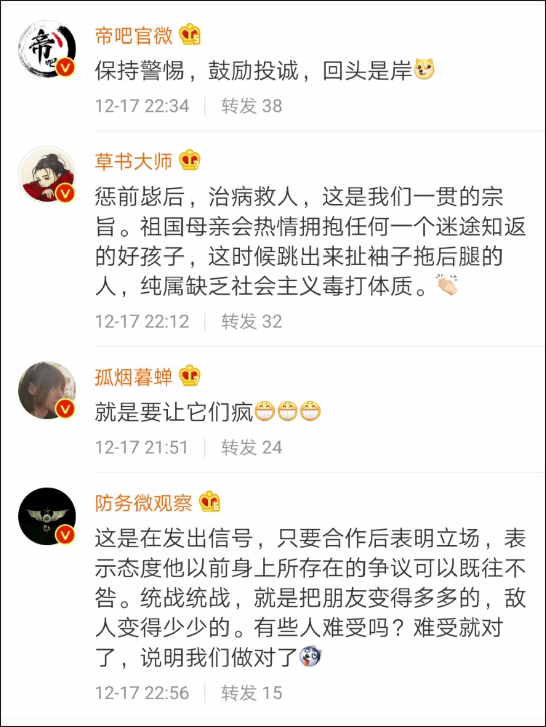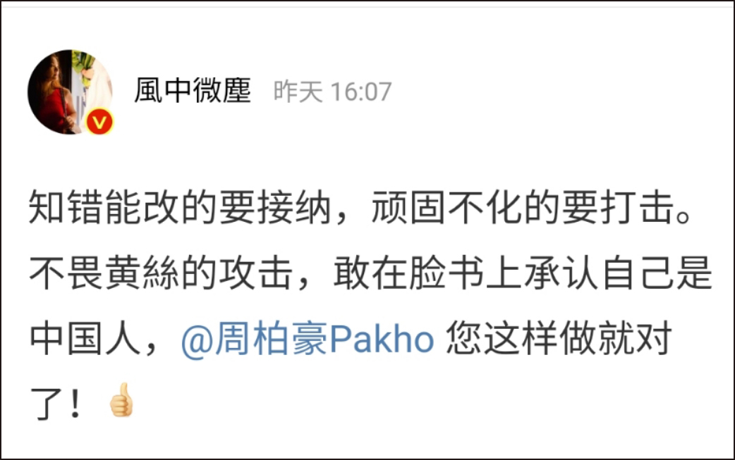 大V「風中微塵」說:「知錯能改的要接納,頑固不化的要的打擊」👇