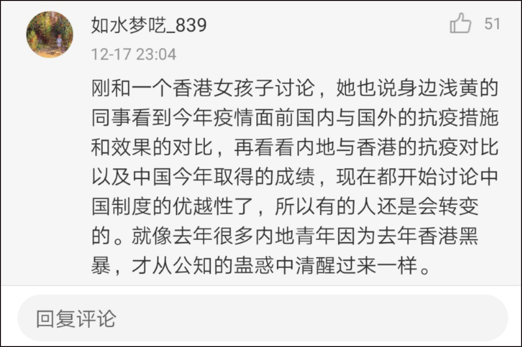 「淺黃的同事,看到中國抗疫取得成績,現在都開始討論中國制度的優越性了」👇