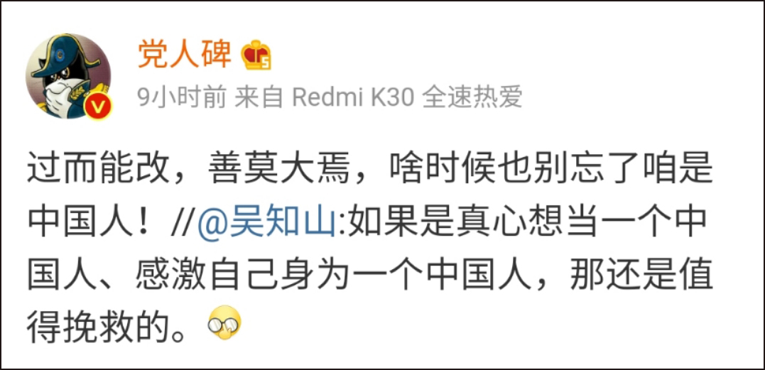 不畏黃絲曱甴的攻擊,感激自己是中國人,「還是值得挽救的」👇