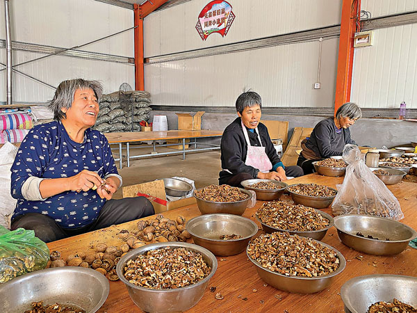 在梁家灣村的「扶貧微工廠」裏,幾位老年婦女一邊剝核桃,一邊開心地聊着天。「我們年紀大了,在家看孫子,港澳辦在村裏蓋起了微工廠,送完孩子上學,大家就來這裏幹活,我每個月最少能掙八九百,年輕的能掙一千五六。孩子也管了,還能掙錢,感覺在家裏說話都有底氣了。」66歲的魏愛梅笑着說。