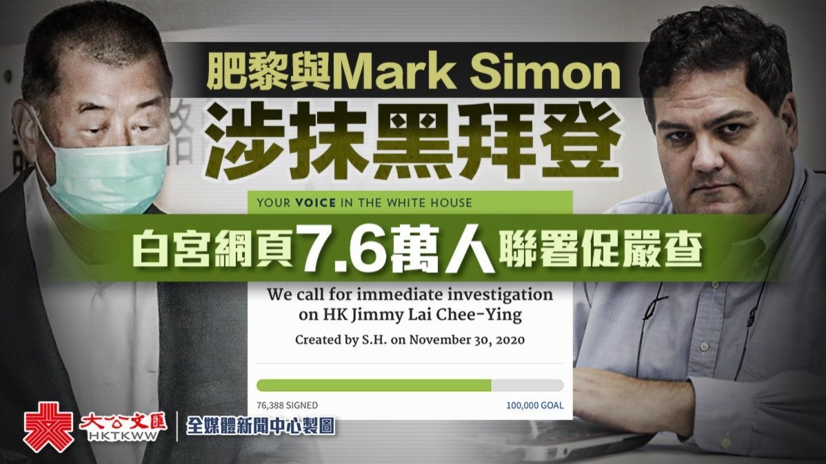 涉嫌違反香港國安法、官司纏身的亂港黑手、壹傳媒創辦人黎智英潛逃風險極高,本月23日竟獲高等法院原訟庭法官李運騰批准保釋,引起市民極大憤怒。黎智英另於10月底捲入涉嫌造假抹黑當時為美國總統候選人拜登的醜聞,黎其後承認助手Mark Simon有份參與,所用金錢由黎公司提供。早前有網民在美國白宮網站發起聯署,截至今日(25日)已有超過7.6萬人參與,要求美國政府調查兩人是否涉及發布虛假訊息以及非法干預大選。