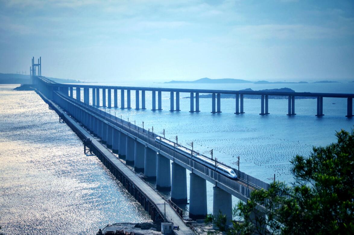 據新華網報道,2013年動工的福平鐵路建設歷時7年,穿山越海,克服了重重困難。尤其是在風大、浪高、岩硬,被稱為建橋「禁區」的平潭海域,建設者建成了世界上最長的公鐵兩用跨海大橋——平潭海峽公鐵大橋。