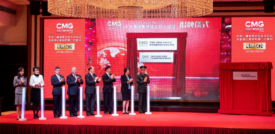 大公報綜合央視新聞、中新社、澳門日報報道:12月26日,中央廣播電視總台亞太總站及下轄香港記者站和澳門記者站在香港、澳門以「雲鏈接」方式正式揭牌成立。全國政協副主席何厚鏵,澳門特別行政區行政長官賀一誠,中宣部副部長、中央廣播電視總台台長兼總編輯慎海雄,中央人民政府駐澳門特別行政區聯絡辦公室副主任張榮順、嚴植嬋,外交部駐澳門特別行政區特派員公署署理特派員王冬,中國人民解放軍駐澳門部隊政委孫文舉在澳門共同出席揭牌儀式。由總台與澳門特區聯合製作的大型4K紀錄片《澳門之味》,同日在澳門舉行開機儀式。