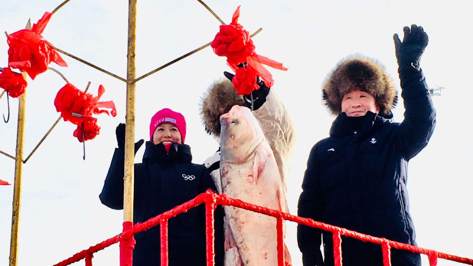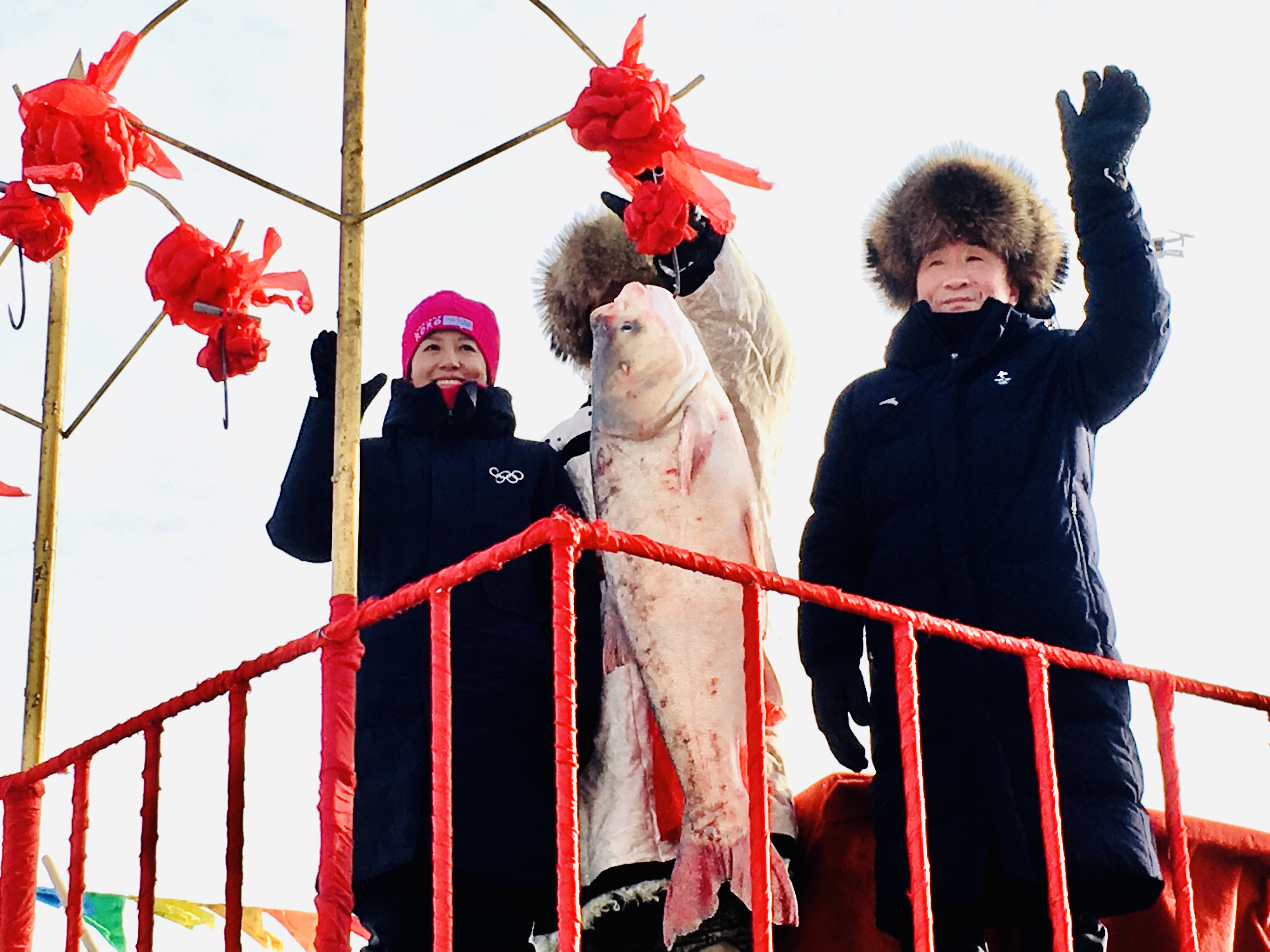 (大文新聞網記者 盧冶)每年12月末,是查乾湖冬捕的黃金期。28日,第19屆查乾湖冰雪漁獵文化旅遊節在吉林松原啟幕。萬尾鮮魚出「玉門」,今年,重約45斤的「頭魚」出水後更是拍出了299.9999萬元人民幣的天價,成為查乾湖冬捕歷年來價格最高的頭魚。在冰封湖面上,遊客共睹冰湖騰魚的壯景,爭相購買鮮魚,希望搶奪新一年的「頭彩」。