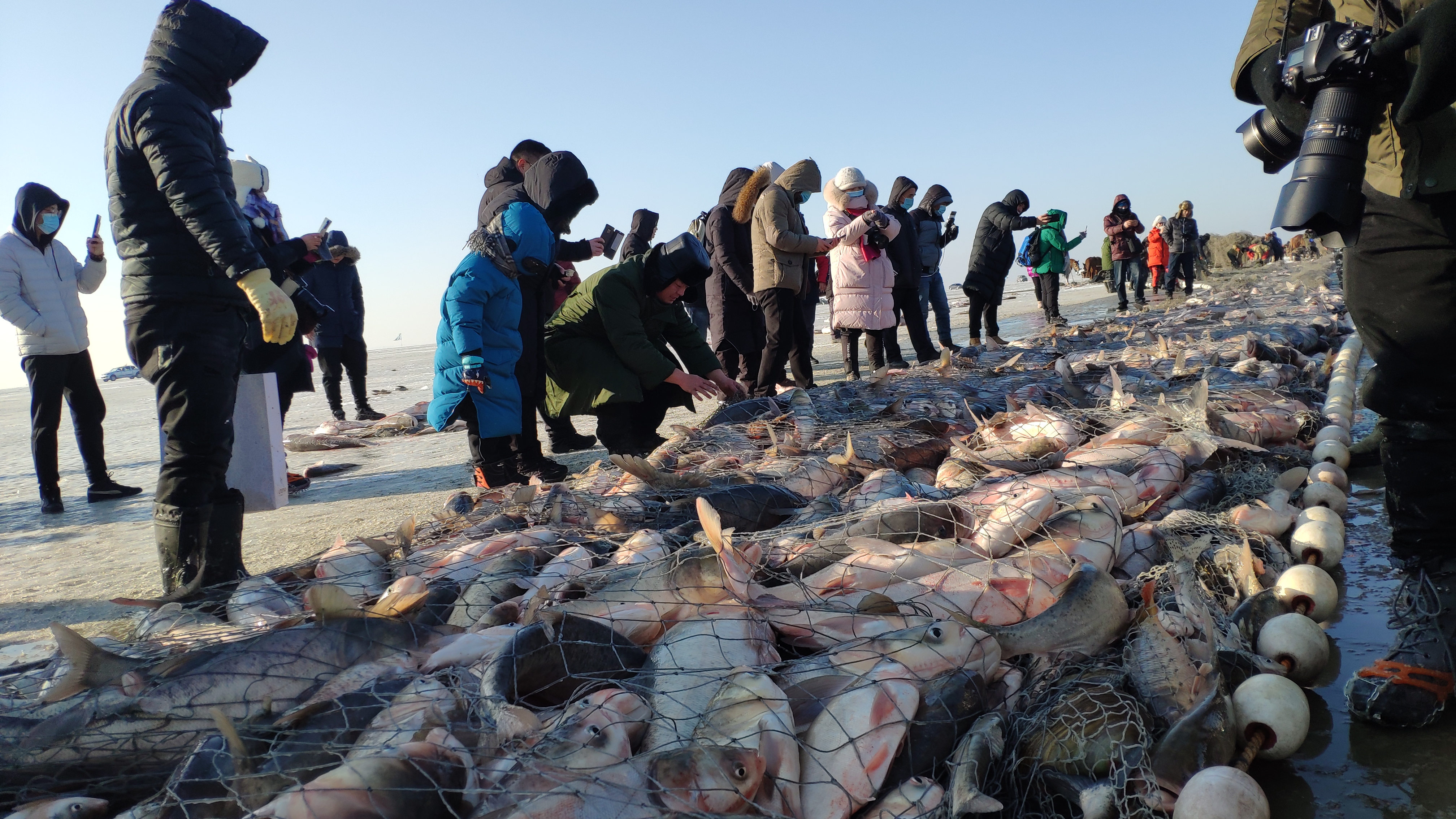 查乾湖漁場書記單國軍告訴記者,查乾湖盛產70多種魚,冬捕產品以胖頭魚、鯉魚和鮑魚為主。「南方的訂單這兩年尤其多,有時單網出貨10多噸,不到一小時就在冰面上賣光了。」單國軍笑着說,查乾湖的魚遍布大江南北。