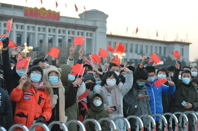 (大文新聞網記者 任芳頡)元旦清晨北京的氣溫已跌至零下十幾度,但依然阻擋不住大家觀看升旗的熱情,1.5萬名市民和遊客齊聚天安門廣場,共同見證五星紅旗冉冉升起的莊嚴時刻,迎接2021年的第一縷陽光。