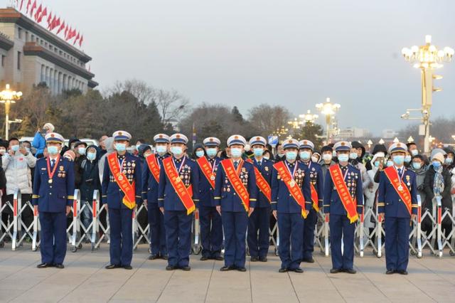 現場,群眾們戴着口罩,裹緊衣服,時不時的搓搓手、跺跺腳,一抵禦嚴寒,有的群眾揮舞着小紅旗,與天安門廣場合照留念。他們當中有不少人特意從外地趕來,只為觀看2021年首場升旗。人群中,10位穿着「火焰藍」制服的消防員尤為顯眼,他們來自黑龍江,是首屆「龍江最美消防員」的獲得者,此次特別受邀來觀旗。
