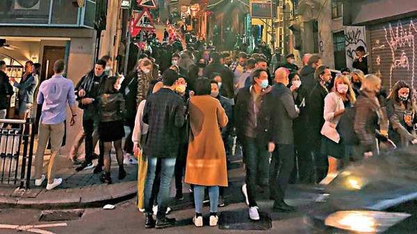 酒吧如常賣酒吸引大批酒客在附近聚集,礙於政府規定每晚六時後不得提供堂食,所以這些酒吧只提供酒類外賣服務,並為酒客提供紙杯及開瓶服務,酒客買後便到附近街頭或公園,除罩飲酒並與朋友高談闊論,公眾地方變身露天派對樂園。