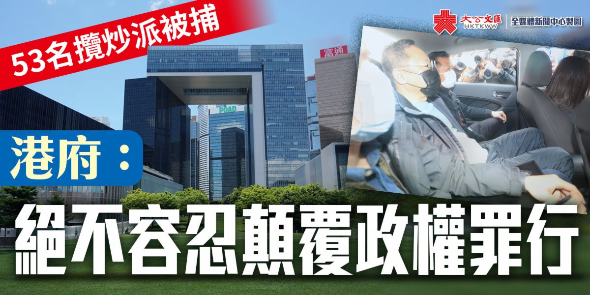 大公文匯全媒體報道,警方今日(6日)採取行動,針對組織、策劃、實施或者參與實施顛覆政權的活躍分子,依法拘捕53人,涉嫌違反香港國安法顛覆國家政權罪。特區政府隨後表示,絕不容忍顛覆國家政權罪行,強調危害國家安全是嚴重罪行,香港國安法對危害國家安全罪行有明確定義,特區政府定必嚴厲打擊,以儆效尤。