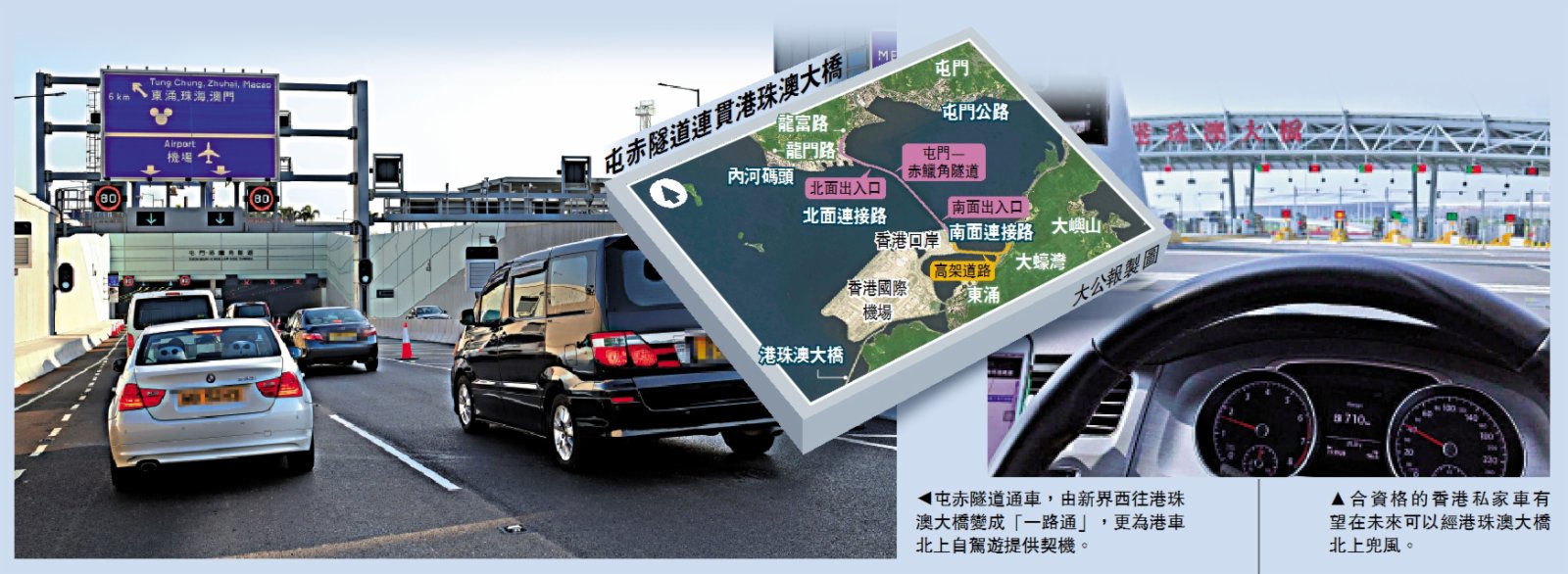 【大公報記者 關據鈞 報道】屯門赤鱲角隧道通車,由新界西往港珠澳大橋變成「一路通」。特區政府指出,屯赤隧道為不設配額的港車北上自駕遊提供契機。