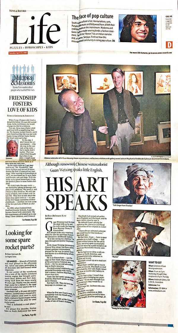 他認為,作為畫家得到的最大的褒獎,就是觀眾熱情的評論和激動的淚水。「這證明他們認定了作品的藝術價值。」2005年收藏《陝北歌手》的美國人,又在2007年特地趕來看關維興的第二次展覽。這位美國人告訴他,兩年來他們全家都被這幅畫所感動,心情總是起伏不平,尤其是他90多歲的媽媽評價說:「這畫裏的人多麼樸實善良,還帶點兒詼諧,活脫脫像我的老父親。」關維興高興壞了,笑着對記者說 :「『詼諧』是我創作這幅作品時挾帶的 『私貨』,沒想到被一位遠隔重洋、語言不通的老太太給看出來了。」這樣跨越地域和文化的共鳴,讓關維興感到了濃濃的幸福感。