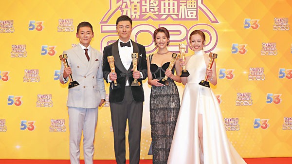 (香港文匯報記者 達里、梁靜儀、阿祖)2020台慶頒獎禮前晚順利頒發各大獎項,王浩信以大熱姿態包攬香港、馬來西亞視帝,蔡思貝就初嚐視后滋味,而龔嘉欣就贏得最受歡迎女角色獎及馬來西亞視后,張振朗則有最受歡迎男角色及電視拍檔獎。王浩信夫婦關係一向惹人猜疑,王浩信坦言拿獎回家亦不會一家人慶功。而蔡思貝兌現3年前努力進步的承諾,並且變得更愛自己。