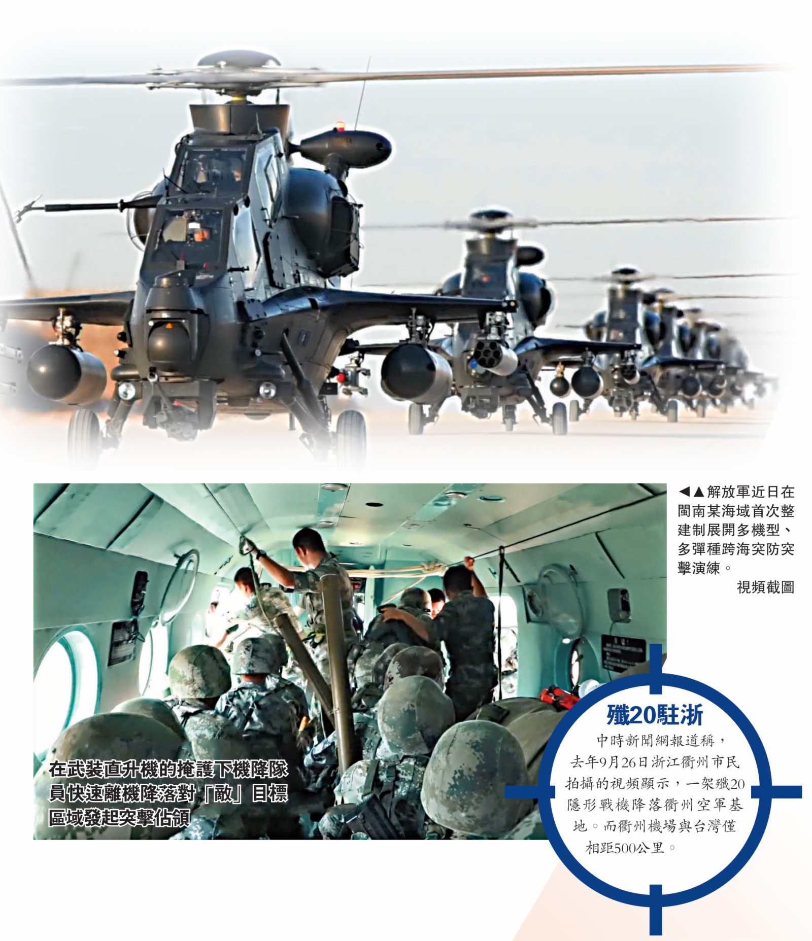 (大公報記者 蘇榕蓉)據台媒報道,解放軍近日分別在台灣北部的東海海域實施多艘軍艦實彈射擊與對抗演練,在台灣西部的福建南部海域進行直升機大編隊跨海突擊、島礁佔領演練。台媒稱,由於軍演區域是在台灣南北兩端,具有強烈的對台針對性。有學者表示,特朗普政府下台在即,卻仍猛打「台灣牌」,解放軍近日的演練是因應當前形勢的需要。第73集團軍陸航旅的演習是在以實際行動警告台當局及華府,不要向「台獨」發出錯誤信號。