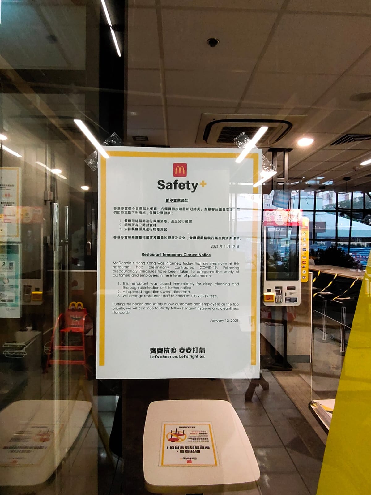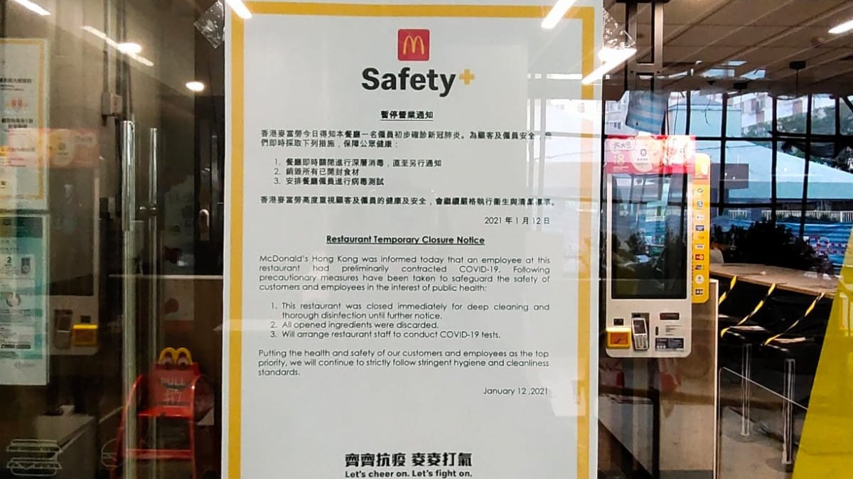 大公文匯全媒體報道,香港新冠肺炎疫情持續,民建聯葵青區盛康選區區議員梁嘉銘今日(13日)於社交平台指出,長康邨麥當勞一名員工初步確診新冠肺炎,該分店於門外貼出有關告示,並現時已停業關閉,進行深層消毒,並安排員工進行病毒檢測。