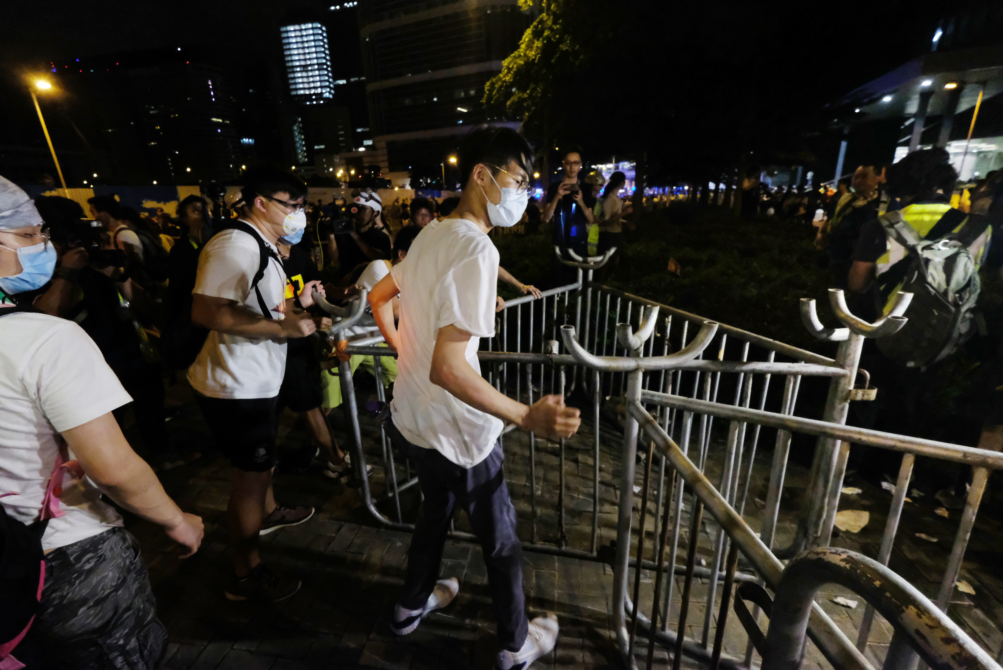 案情指,前年6月9日晚上約10時,「民陣」宣布所有遊行集會結束,但仍有逾200名示威者繼續在立法會大樓一號出入口外非法集結,並拆下圍封示威區的圍欄衝擊警防線。及至翌日凌晨,大批示威者不理會警方警告,繼續將鐵馬推向警方防線及投擲水樽、雨傘、鐵支等硬物,並用鐳射光射向警員。凌晨12時許,被告戴安、陳均年及曾泳祥連同其他示威者把一些鐵馬推向警方封鎖線,警員見狀衝到人群中捉住戴,陳均年嘗試拉走戴不果,失去平衡倒地,之後被其他警員制服。戴陳2人被捕後警誡下保持緘默。而曾則與另一人將花槽推向立法會入口。