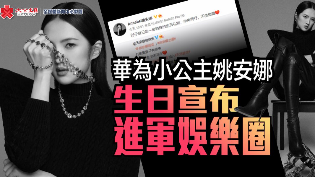 大公文匯全媒體報道,華為創始人任正非的小女兒姚安娜(Annabel Yao)今日(14日)迎來23歲生日,她發微博宣布正式進軍娛樂圈,成為「天浩盛世」的簽約藝人。