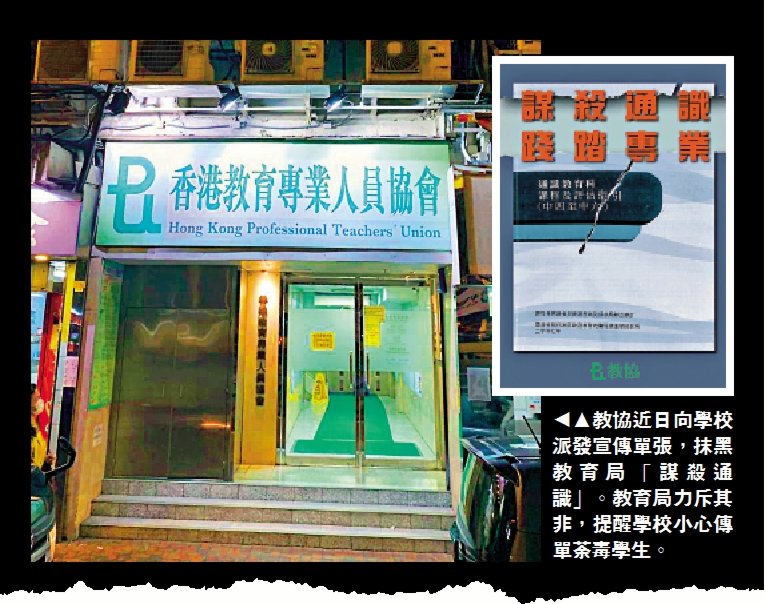 教育局昨日向全港學校校長發信,指近日接獲學校投訴,有教師工會將一份宣傳單張跟隨其月報在學校分發,標題為「謀殺通識」。大公報記者搜尋資料發現,該份資料為教協1月11日出版的宣傳單張,宣稱局方改革通識科是「政治決定」、「推行倉促,無視素質」云云。教育局批評,該會無視通識科多年出現的問題,不但沒提出具體改善建議,反而一再抹黑必須的課程改革,希望學校及老師認清事實,切勿被其誤導。