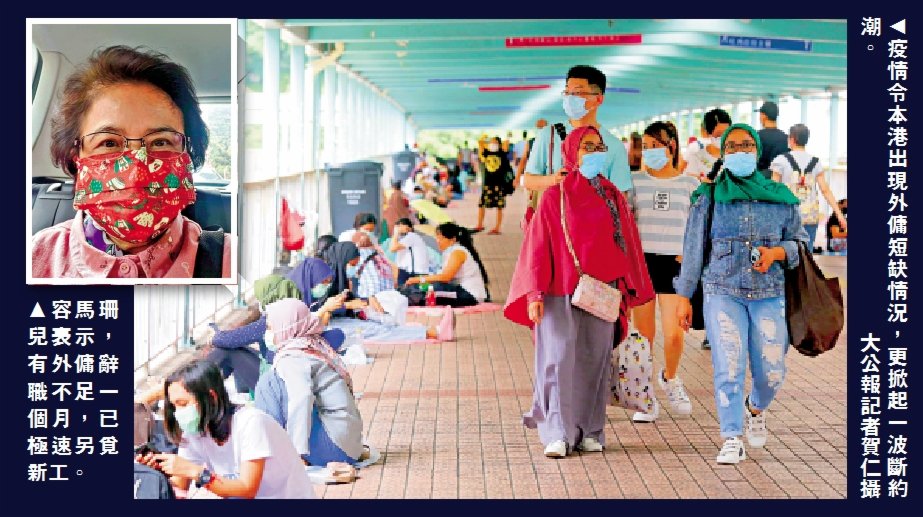 (大公報 記者 馮錫雄)政府早前推出新措施,規定外傭完約或斷約兩周內要離港,希望藉此遏止外傭頻繁轉換僱主(跳槽)的情況。不過,有僱主稱工作接近一年的外傭突然交辭職信,事隔不足一個月已覓得另一僱主,質疑新措施無法阻止外傭跳槽。香港僱傭公會表示,現時市場供不應求,外傭離職後「掛單」,最快一天已可覓得新僱主,再向入境處申請簽證。