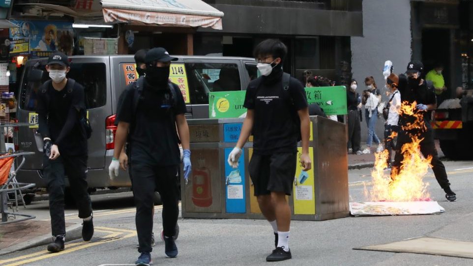 其間,一名黑衣人向事主淋潑易燃液體並點火,令事主身體和頭部多處燒傷,涉事黑衣人其後逃去無蹤,警方經過深入調查,鎖定兩名分別17歲及25歲男子,其中25歲疑犯相信是當日點火焚燒事主的男子,另一名17歲疑犯為其同黨,當日亦在橋上。
