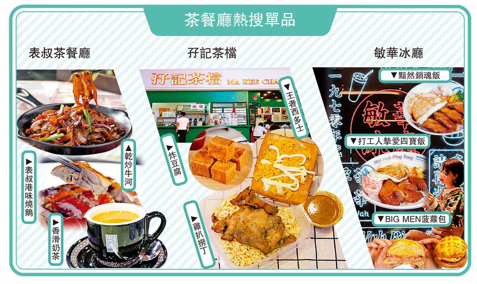 2018年,太興集團總經理陳家強在港一手挖掘敏華,又重塑冰室內涵。陳家強自創的BIG MEN菠蘿包、「騷氣」命名的黯然銷魂飯,食客在拿起菜單的一瞬間便有了調侃的小心情。帶着這份「小確幸」,他們主動分享到了自己朋友圈,一傳十、十傳百,便自帶了社交屬性。