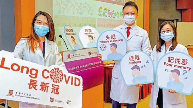 另外,團隊跟進30名新冠肺炎康復者,發現當中80%病人仍持續出現「長新冠」症狀,三分之一受訪者更有三種以上的症狀。中大醫學院腸胃及肝臟科助理教授麥詠欣醫生表示,大部分患者在感染後六個月仍持續出現「長新冠」症狀,如疲倦、記性差、失眠、呼吸困難和脫髮,意味着腸道微生態失衡,不但可影響新冠肺炎病情的嚴重程度和出現細胞因子風暴的風險,更與愈後的身體狀況息息相關。