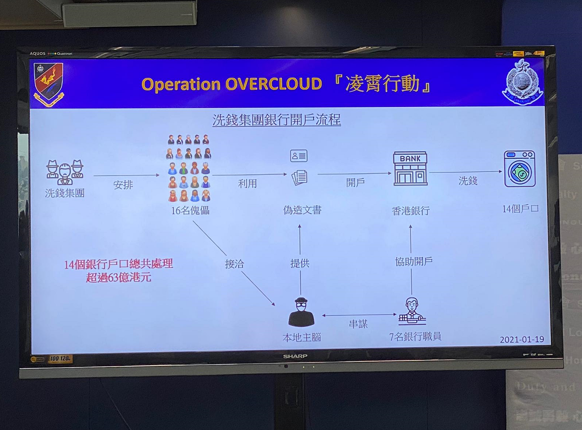 大公文匯全媒體報道,警方商業罪案調查科今日(20日)上午11時舉行記者會。商業罪案調查科警司葉永林表示,警方商業罪案調查科經過深入調查,於昨日(19日)進行名為「凌霄行動」的拘捕行動,以涉嫌串謀洗黑錢罪成功拘捕5男2女,年齡介乎30至37歲,被捕人士全部都是現職或曾任職銀行職員,他們涉嫌串謀洗黑錢逾63億元港幣。警方相信今次行動成功瓦解一個跨國犯罪洗黑錢集團,警方亦從一名犯罪分子所住的公屋單位搜獲現金780萬元。