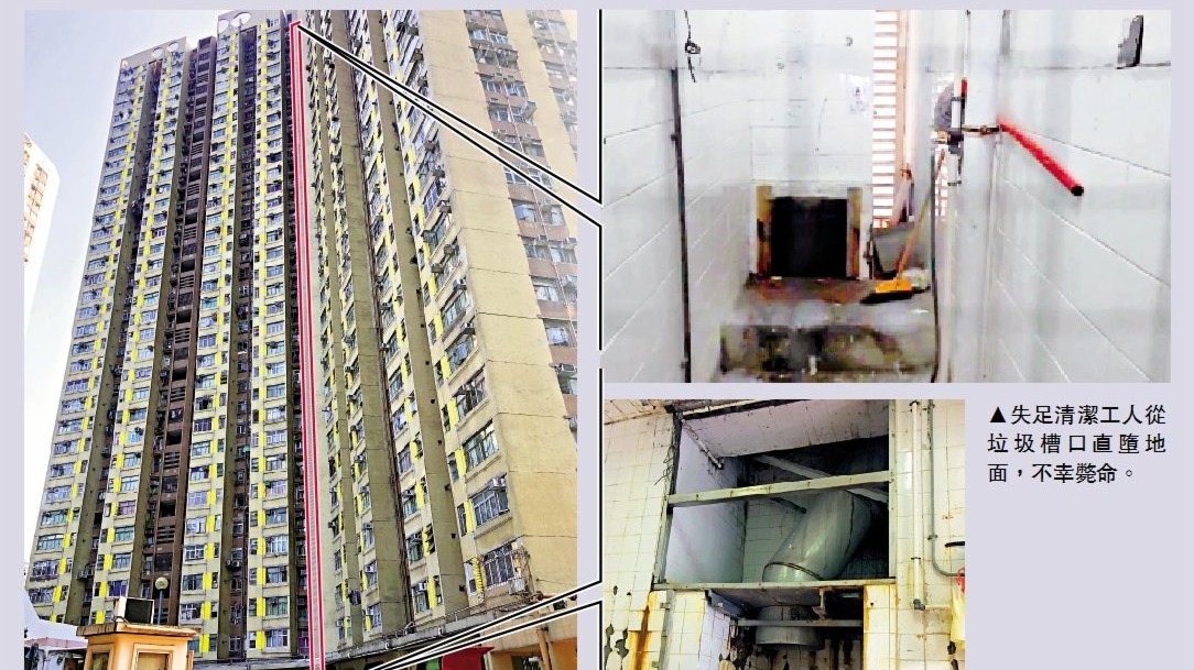 本港過往曾發生清潔工人墮垃圾槽死亡悲劇,有清潔工人工會指,舊式公屋垃圾槽使用多年,一直存在安全隱患,早於2017年馬鞍山發生同類事件後,房署曾進行垃圾槽改善工程,惟「治標不治本」,建議採用「推桶入升降機」的方式收集大廈垃圾,以策安全。