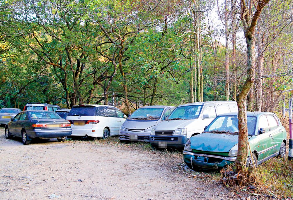 另外,離村不遠處的荃錦公路山坡,到處都能看到棄車。其中一處豎立「政府土地」警告牌的山坡,停泊了多輛行車證已過期的棄車;再沿公路而下約百米處,停有至少七部棄車,車廂堆滿雜物,儼如「殭屍車墳場」;當中一部平治房車,從車頭「鬼面罩」、車頭燈,再到引擎機件已被掏空,砸破的車窗碎片散入車內,車廂凌亂不堪。